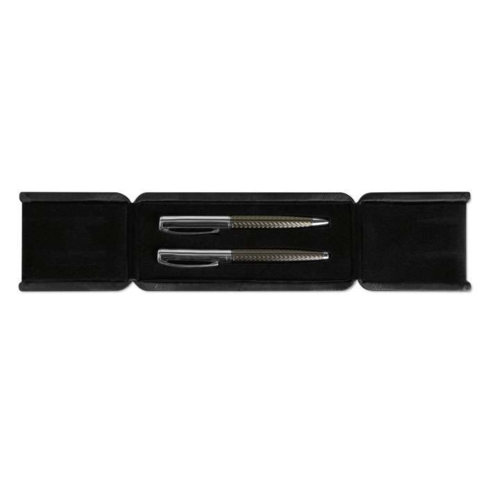 Set penne in confezione regalo. Penna twist e roller con refill blu.