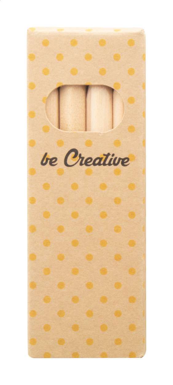 Matite colorate in legno (4 pezzi) in scatola di cartoncino kraft stampato a colori. Il prezzo include la stampa digitale. MOQ: 100 pezzi.