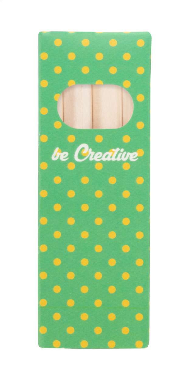 Matite colorate in legno (4 pezzi) in scatola di cartoncino kraft stampato a colori. Il prezzo include la stampa digitale. MOQ: 100 pezzi.