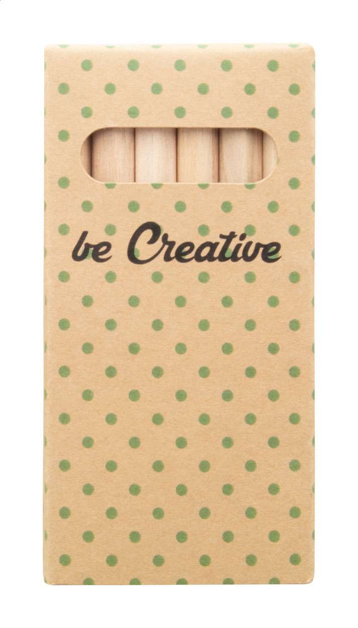Matite colorate in legno (6 pezzi) in scatola di cartoncino kraft stampato a colori. Il prezzo include la stampa digitale. MOQ: 100 pezzi.