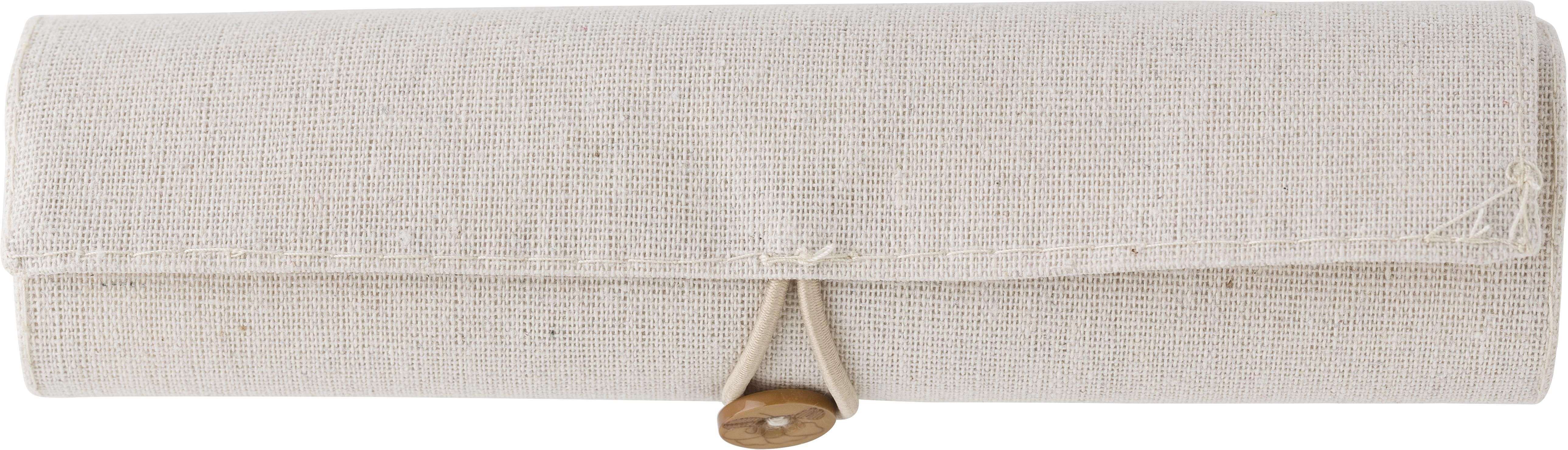 Set da disegno in lino, composto da sei matite nei colori blu reale, blu scuro, verde, giallo, arancione e viola, temperamatite e gomma