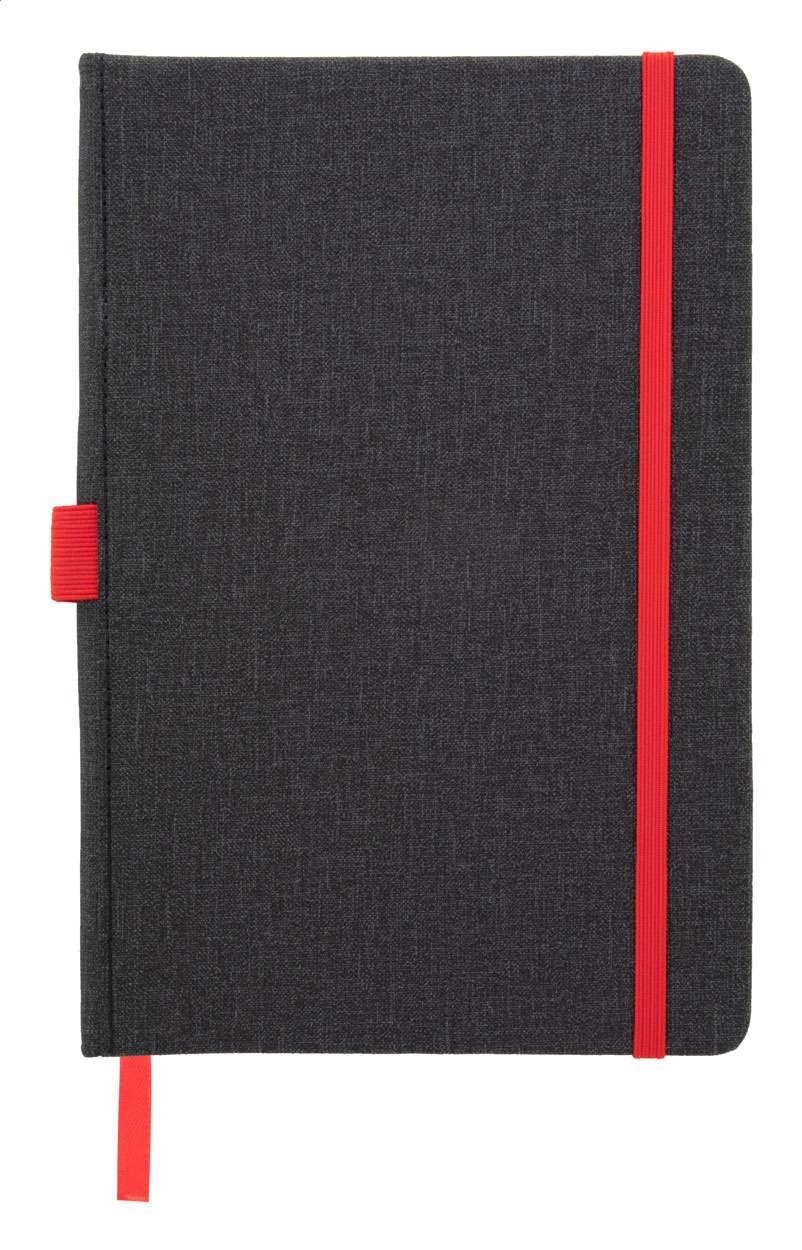 Quaderno con copertina in pelle PU testurizzata, segnalibro, elastico e portapenne in colore coordinato. 96 fogli a righe, formato A5.