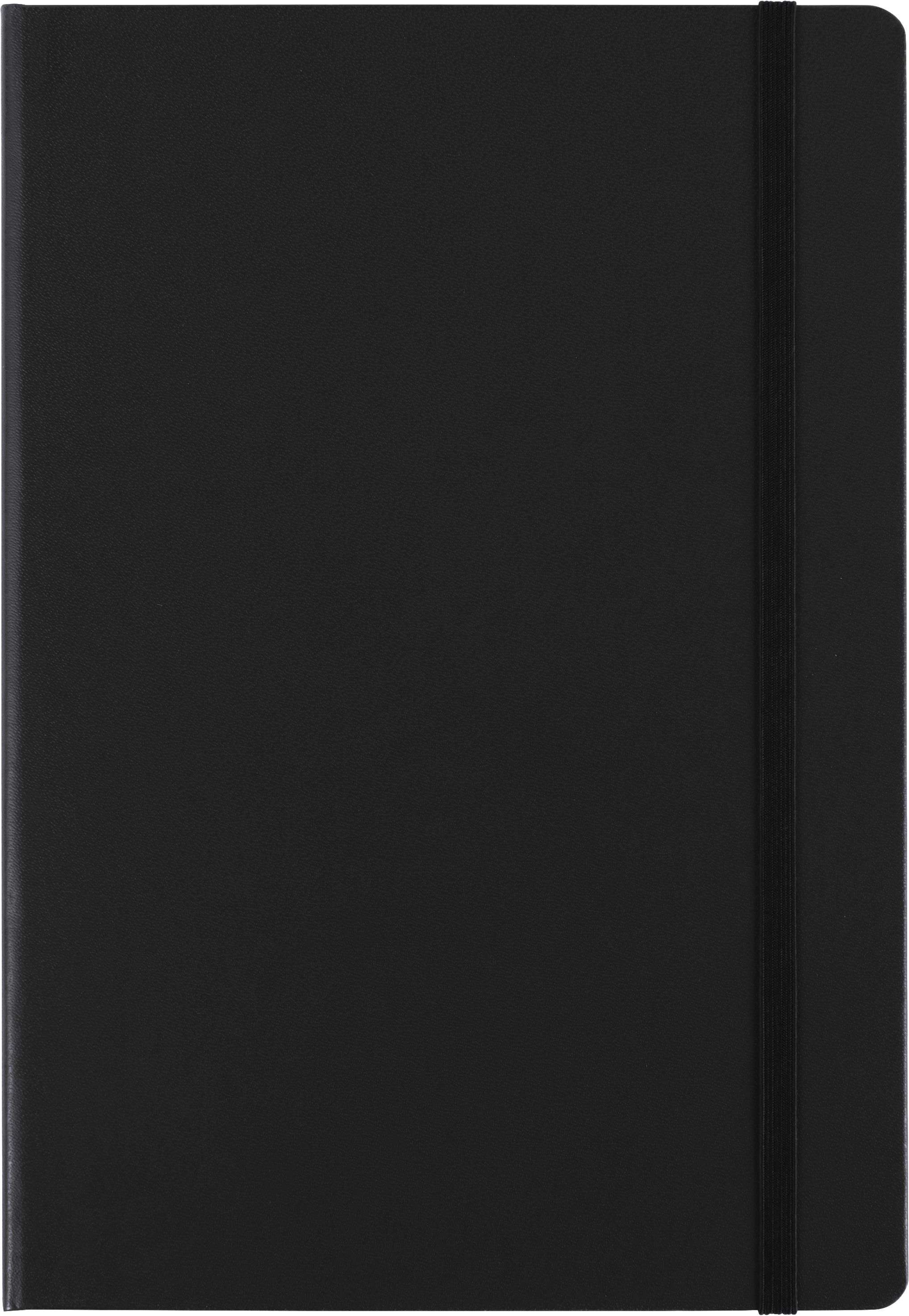 Taccuino colorato in PVC, formato +/- A5, elastico e segnalibro in tinta, 128 pagine a righe, scomparto all'interno della copertina, logo IMPRESSION sul retro