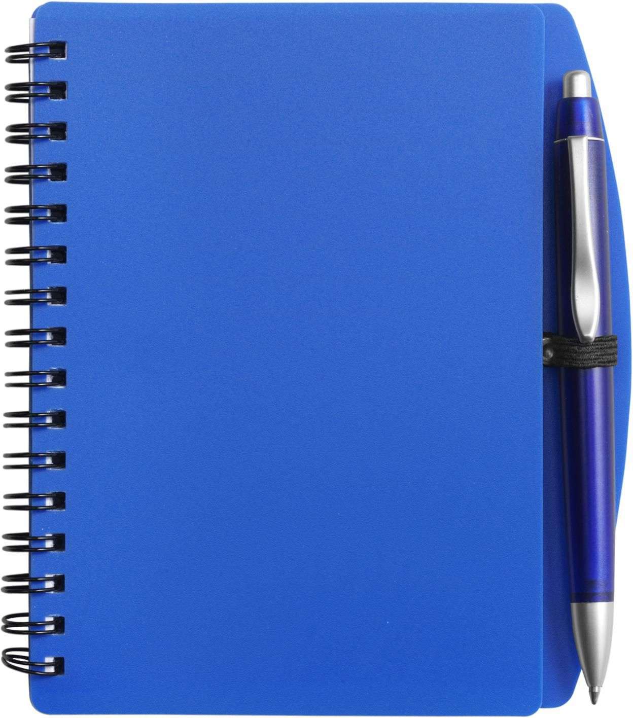 Taccuino in PP, formato +/-A6, 65 pagine a righe, dotato di penna a sfera in ABS con clip in metallo, refill blu